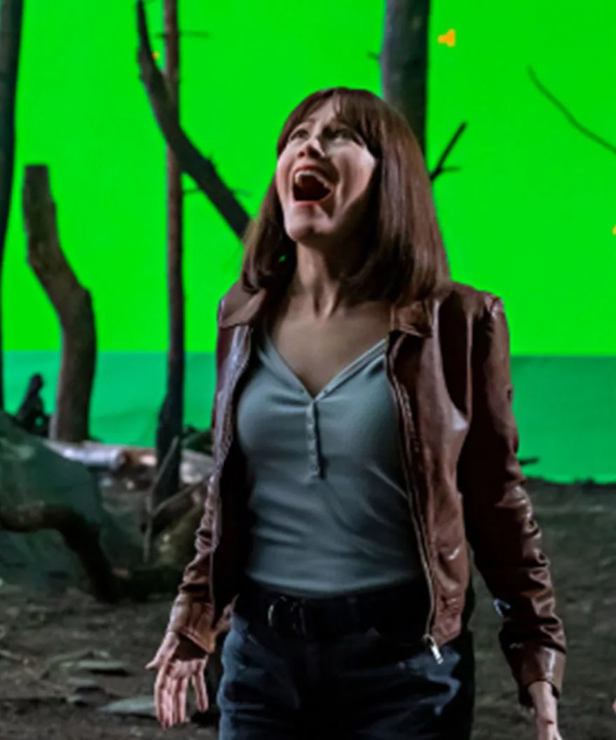 Leslie Mann Lauren Van Chance Brown 2022 The Bubble Leather Jacket
