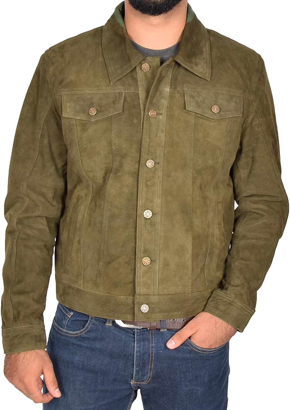 Trucker jackets are a popular part of American fashion. These Mens Green Suede Trucker Jacket are used for a casual look and are often paired with jeans. Truer jackets are usually manufactured in dark colors for a casual look. However, nowadays we find them in various designs. We have a wide range of these jackets in our collection, and you can choose one according to your taste.
